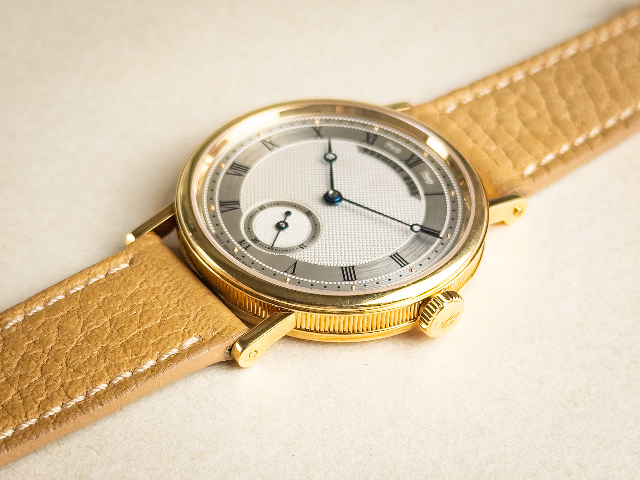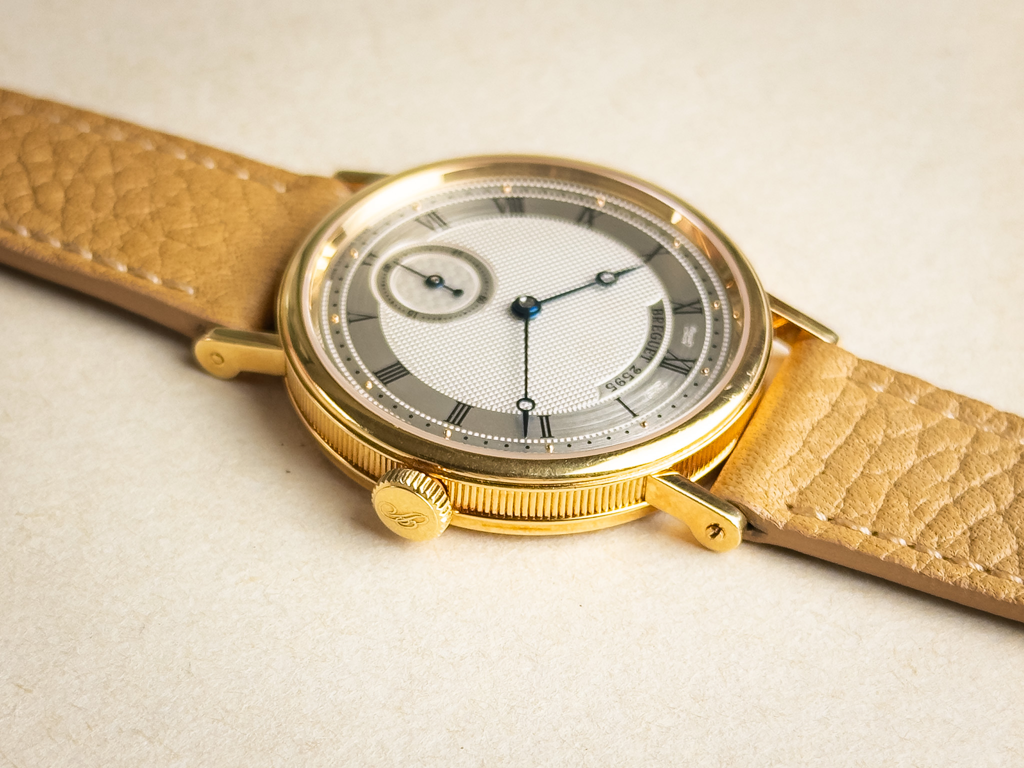 Condition: This 2008 Breguet Classique Ref. 5907BA is presented in excellent condition. The movement runs strong and keeps accurate time, with the power reserve functioning exactly as intended. The solid gold case remains unpolished and shows only very minimal signs of careful wear, retaining its original lines and sharp details. The beautiful hand-guilloché dial is untouched and exceptionally well preserved, with no signs of damage or restoration. Overall, this watch represents an outstanding example of a neo-vintage Breguet classic, combining mechanical integrity with exceptional originality and cosmetic condition.